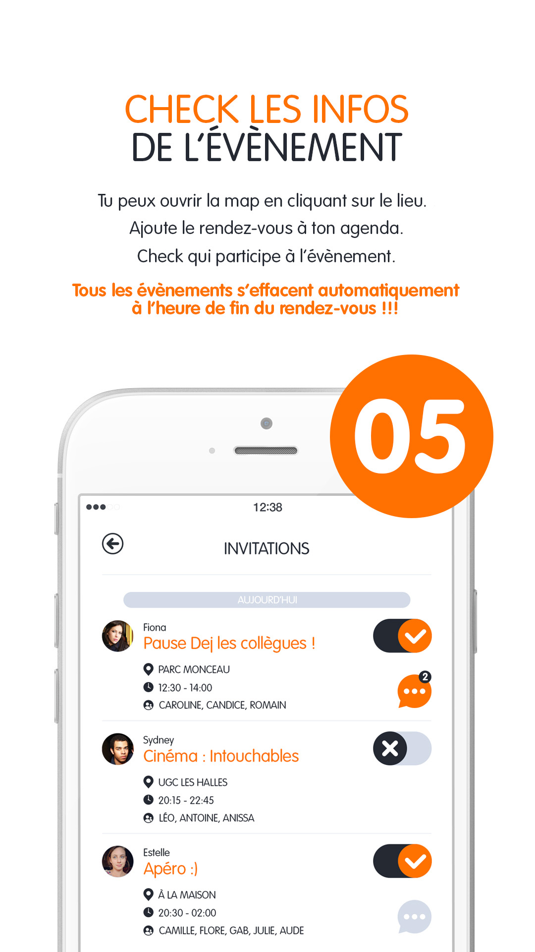JOIN ME NOW permet d’envoyer des invitations tardives à tes amis. C’est l’organisateur de bons plans à la dernière minute.