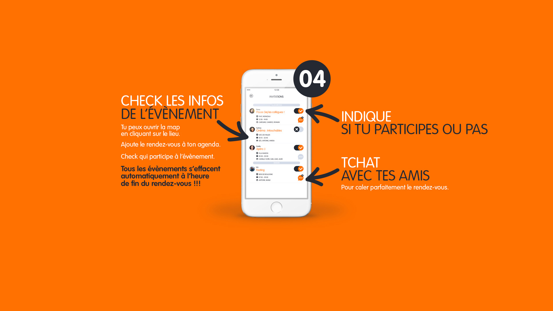 Cette nouvelle application mobile permet de dire à tes amis, Je suis disponible MAINTENANT ! Avec ou sans idée précise, invite tes amis à te rejoindre.